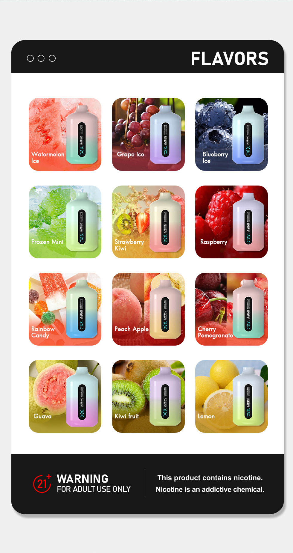 These products are not risk free. contains nicotine which is addictive-not to be sold or used by minors